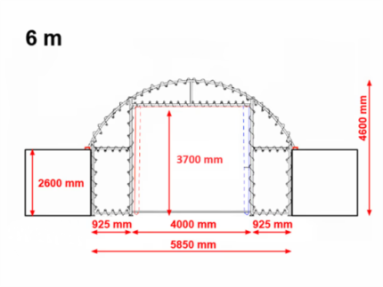 Trasera para cubierta entre contenedores 6m de ancho, PVC 720 ignífugo, Blanco